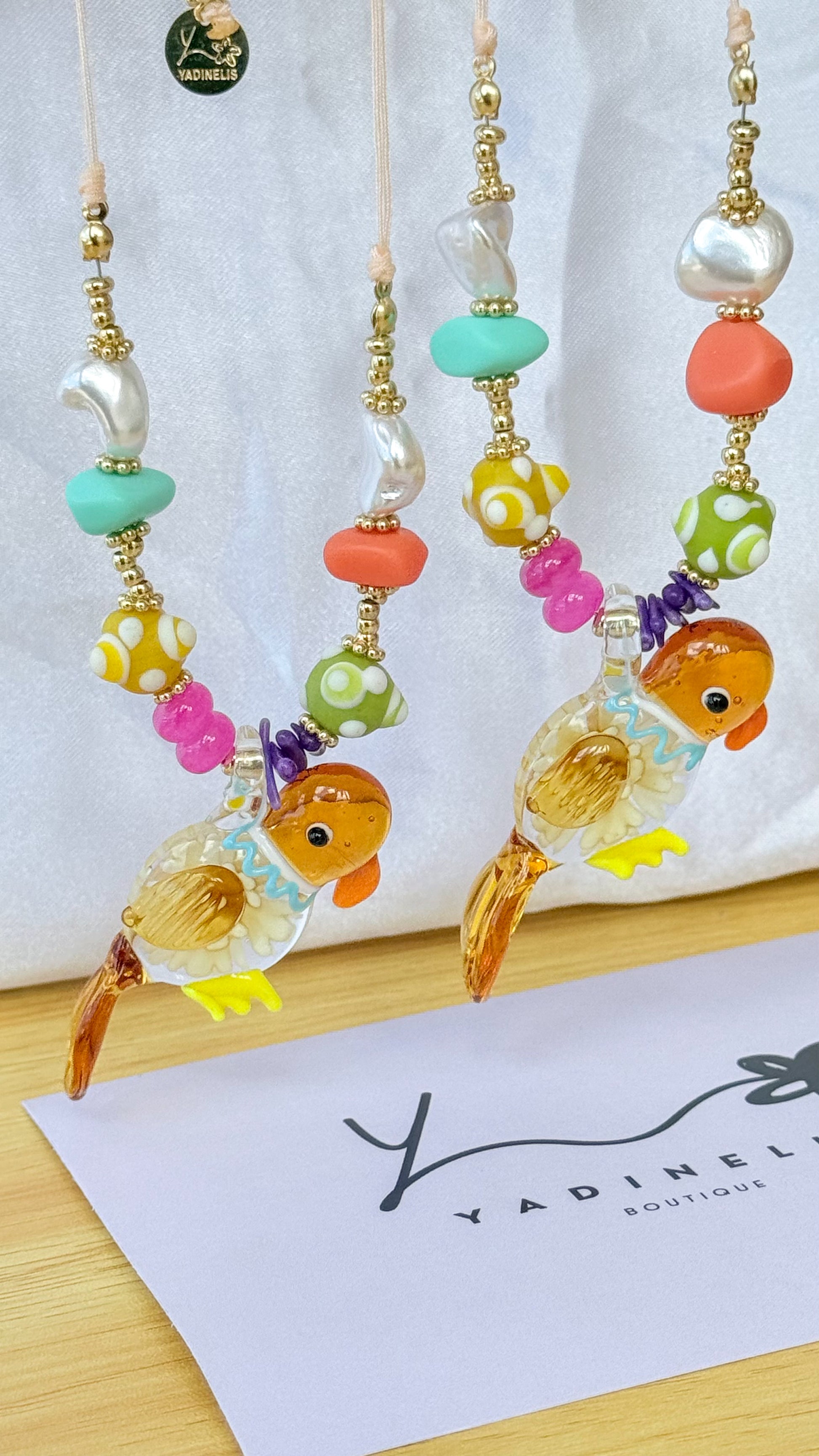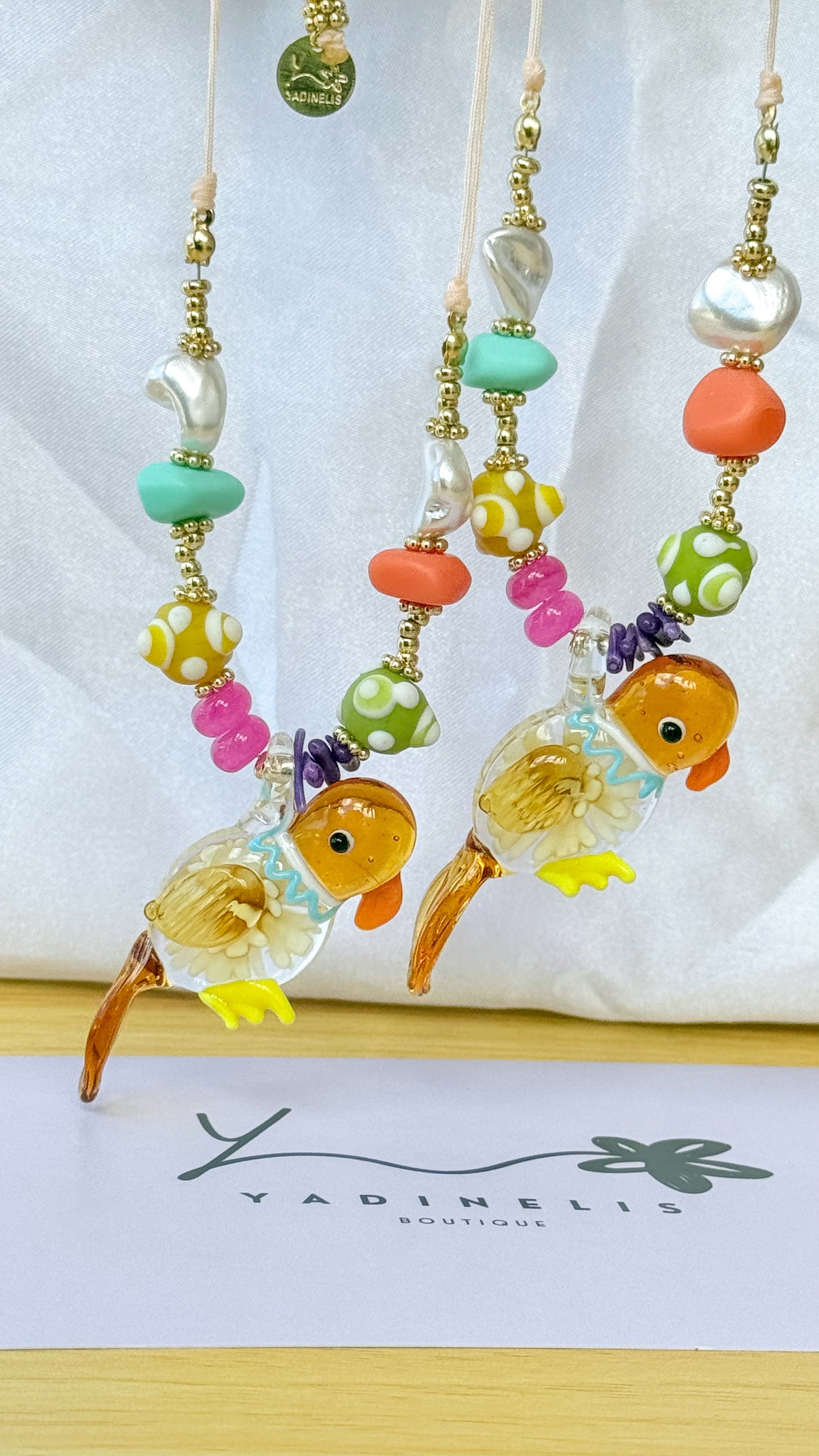 Collar en hilo con Periquito en Cristal Soplado