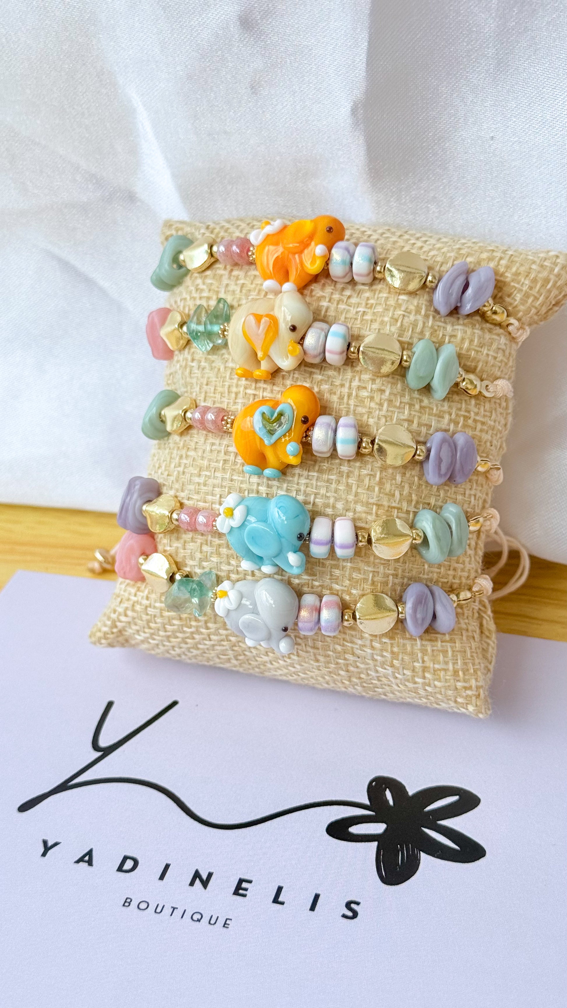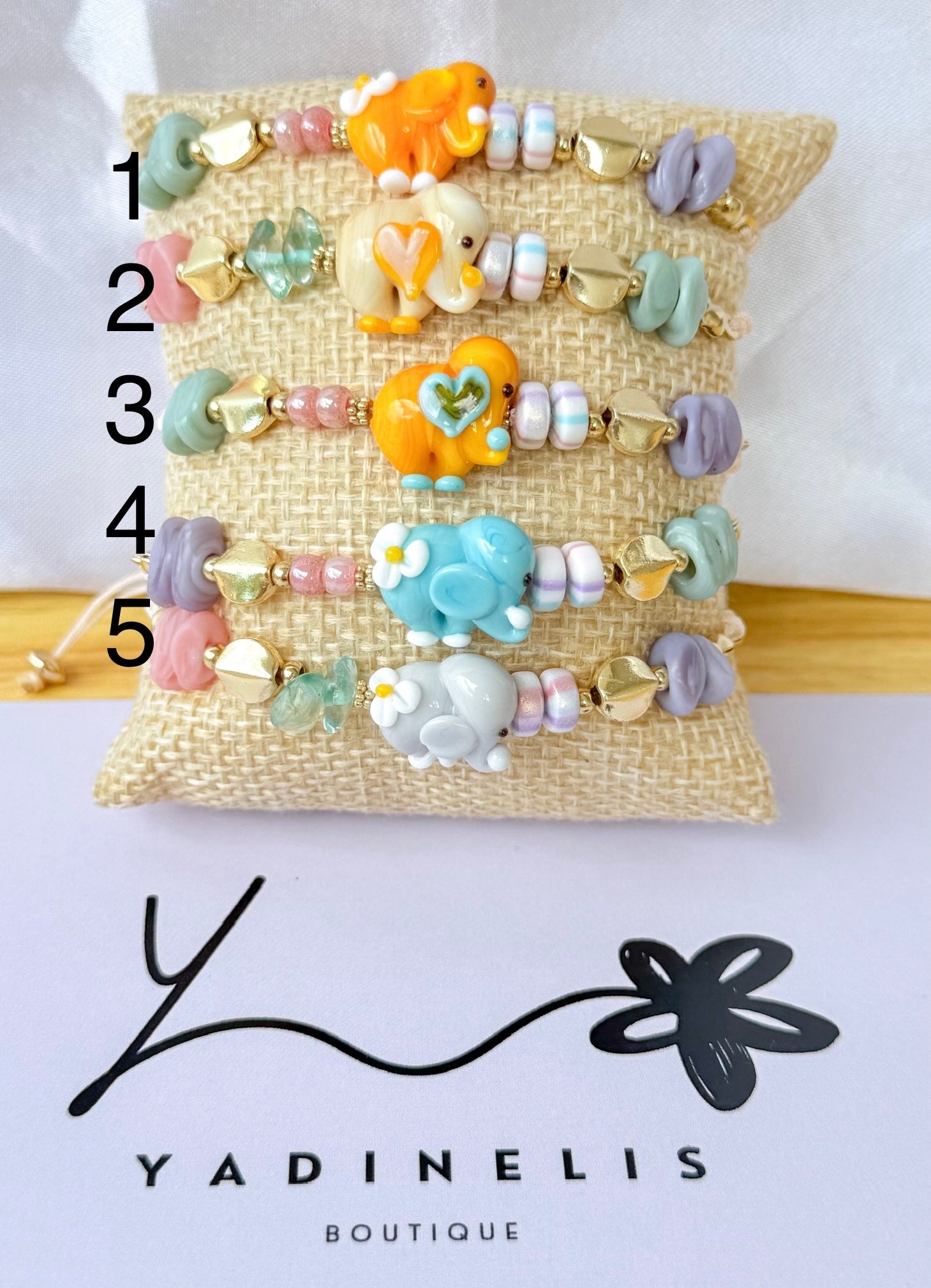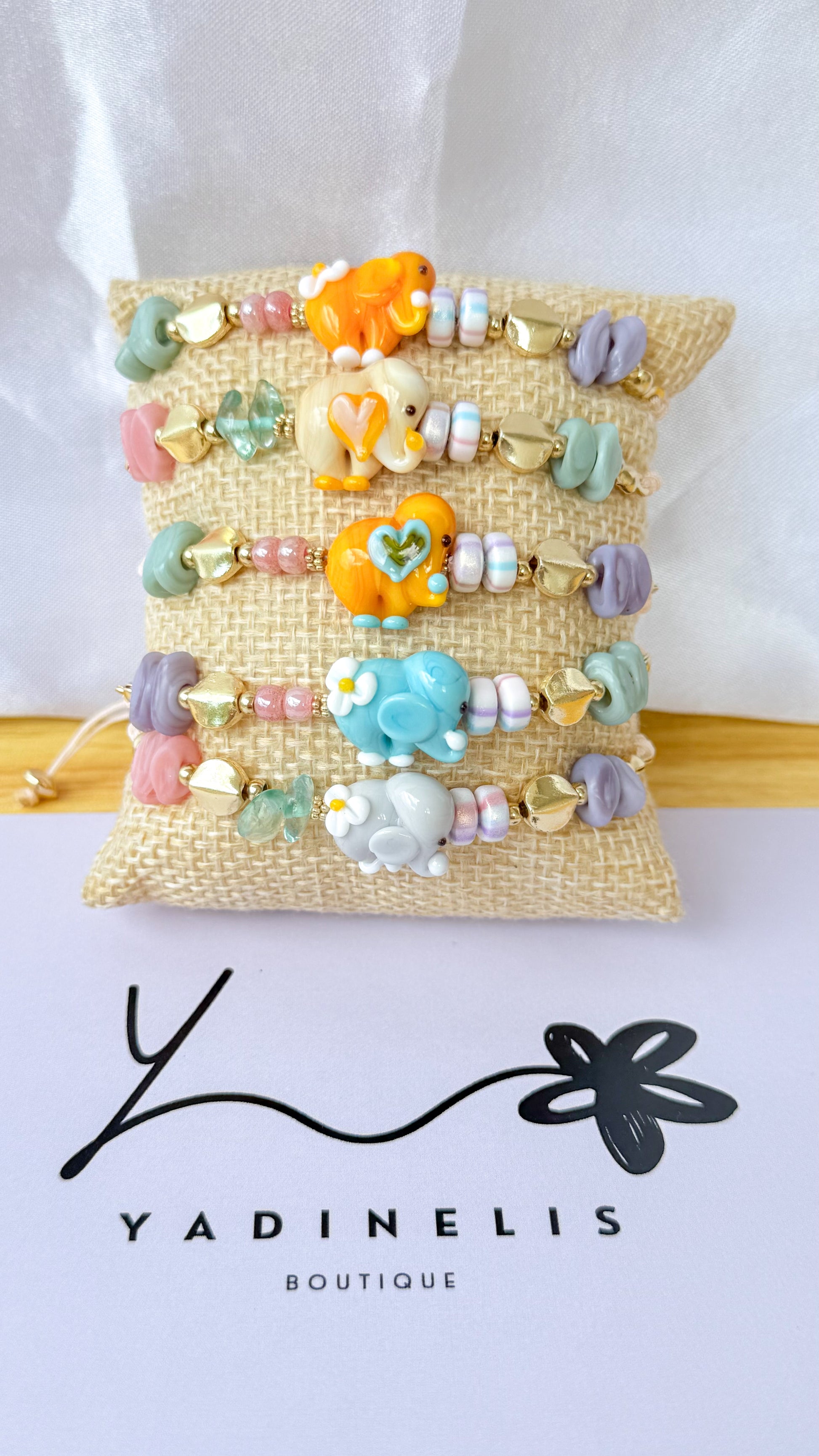 Pulsera en hilo con elefante en Cristal Murano