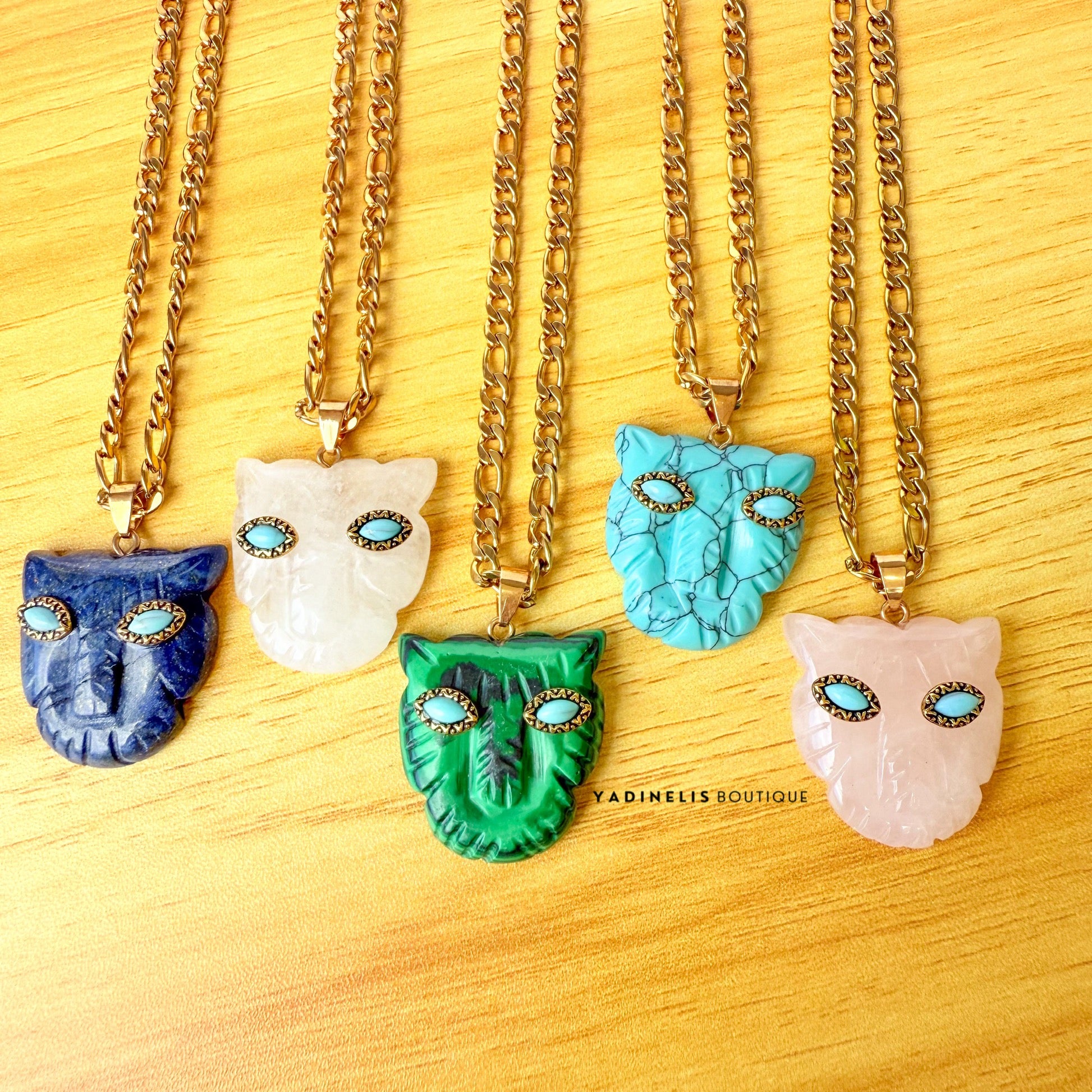 Cadena en Stainless Steel con Charm en forma de leopardo en piedra semipreciosa.
